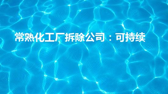 常熟化工厂拆除公司:可持续发展的环境保护与经济效益