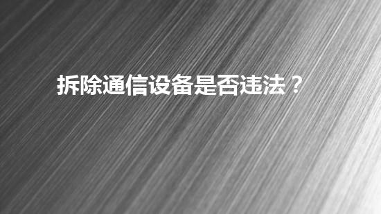 摘要:本文章的主题是拆除通信设备是否违法?本文将会从几个不同的方面对这个问题进行深入分析和探讨。拆除通信设备是一个涉及多个法律和伦理问题的行为,引起了许多人的担忧和争议。本文将会探讨拆除通信设备是否违...