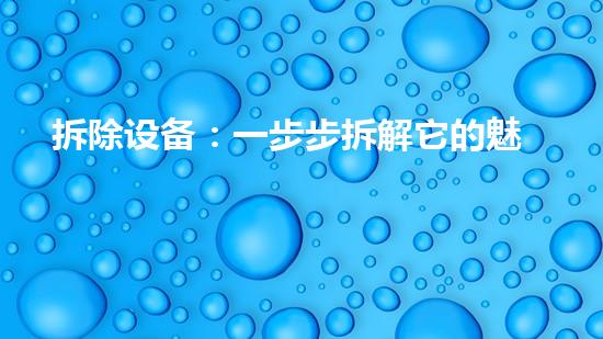 摘要:“拆除设备:一步步拆解它的魅力”是一篇深入挖掘拆除设备魅力的文章。该文章以专业角度深入剖析拆除设备的每一个细节,从不同层面展现它所拥有的魅力;从而引发读者对这一行业的兴趣,探索这一领域的未知奥秘...