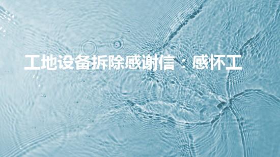 感谢工程师倾情付出的汗水和心血,这是本篇工地设备拆除感谢信的主题。随着工业的不断发展和变化,许多工地设备需要被拆除或更换。在这个过程中,工程师们倾注了大量的心血和汗水,确保了安全和高效拆卸。本文将从多个方面探讨这些工程师的贡献和努力。
