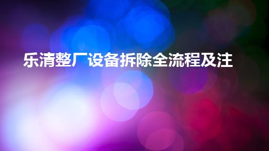随着科技的进步,设备的更新换代已成为各个行业的常态,而设备的拆除则是这个过程的必然结果。本文以乐清整厂为例,深入介绍了设备拆除的全流程及其中的注意事项。其中,我们针对该过程中的几个关键环节进行了详细的分析和介绍,以期为读者提供对于设备拆除的更深入理解。