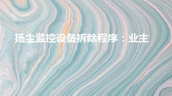 业主在申请拆除扬尘监控设备时,需要按照相关流程进行申请。首先,业主需要到当地环保部门进行咨询,了解具体的申请流程,并拿到相关表格和材料。接着,业主需要仔细填写表格和准备所有必要的材料。最后,将表格和材料交到环保部门进行审核,并等待消息。如果申请成功,业主需要按照拆除方案进行拆除,同时需要按照要求对现场进行清理。