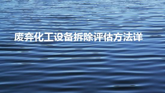 首先应进行现场勘察和调查,以确定废弃化工设备的状况和拆除情况。然后制定拆除计划,包括拆除方式和工序、危险源识别和风险评估、环境保护措施、施工设备的选择等。拆除评估还应详细描述拆除过程中的安全措施,例如应急救援计划、危险源标识、施工人员的培训和安全装备等。