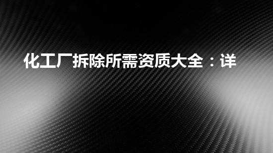 化工厂拆除是一项极具挑战性的工程,需要具备专业的资质和技术。本文将从资质的角度出发,详细解析化工厂拆除所需的资质大全,为读者提供背景信息。文章将从五个方面出发,分别是“拆除资质”,“安全资质”,“环保资质”,“施工资质”和“其他资质”,来深入阐述化工厂拆除所需的各项资质,并介绍巴洛仕集团化工拆除一站式解决方案,水刀不动火拆除技术应用,油罐拆除,化工厂拆除,设备回收,危废处理,土壤修复等方面的经验。