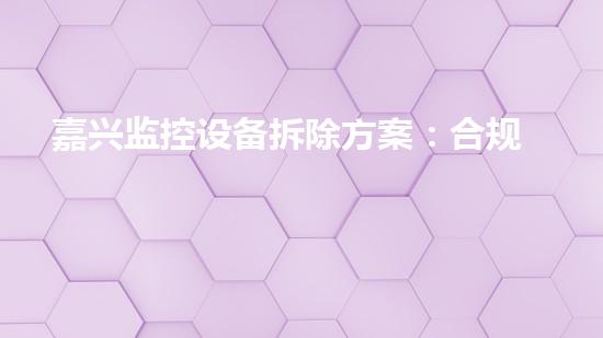 首先,在拆除嘉兴市的监控设备时,我们需要遵守相关的法律规定,掌握清楚的程序和标准。根据《中华人民共和国行政许可法》规定,任何行政行为都必须服从法律规定,严格按照程序、标准、时限和程序进行。因此,对于监控设备拆除方案,我们必须充分尊重和遵守相关法律规定,确保我们的行为是合法的,不会给社会、市民等造成负面的影响。