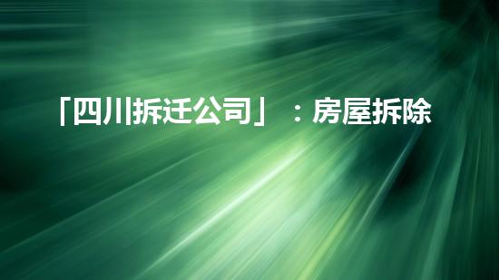 「四川拆迁公司」是一家专注于房屋拆除的专业服务公司,在拆除行业内享有良好的声誉。本文将会从化工厂拆除、环保施工、废弃物处理、水刀切割拆除等多个方面,对该公司进行深入探讨。