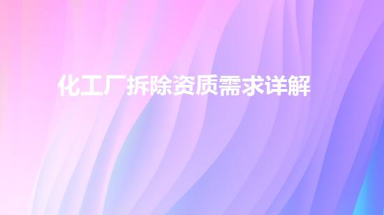 摘要:化工厂是工业生产的重要组成部分,但是当它们过时或需要重建时,化工厂拆除资质需求变得至关重要。本篇文章将详细解释化工厂拆除的资质需求,以及需要注意的重要细节。同时,我们还将向您介绍一些最新的化工厂...