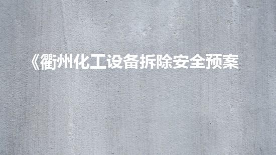 《衢州化工设备拆除安全预案》:预防泄露与环境污染,确保安全高效拆除
