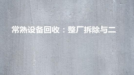 摘要:本文主要介绍常熟设备回收,包括整厂拆除和二手设备利用。由于工业制造业的快速发展,各种设备的数量也在不断增加。因此,设备回收和再利用已经成为当前一个非常热门的话题。本文结合真实案例,从多个方面介绍...
