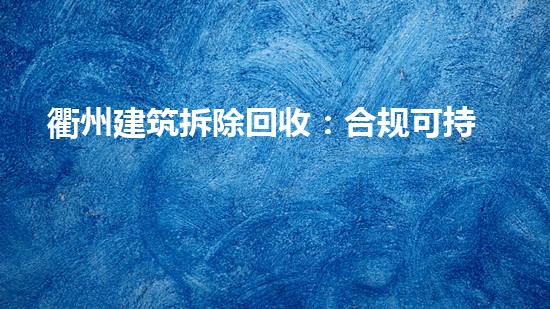 摘要:衢州市是一个历史悠久、文化灿烂的城市,正面临着城市建设的巨大挑战。随着城市化进程的不断推进,建筑拆除回收已经成为一个十分重要的问题。本文将从专业化角度出发,深入阐述衢州建筑拆除回收的合规可持续性...
