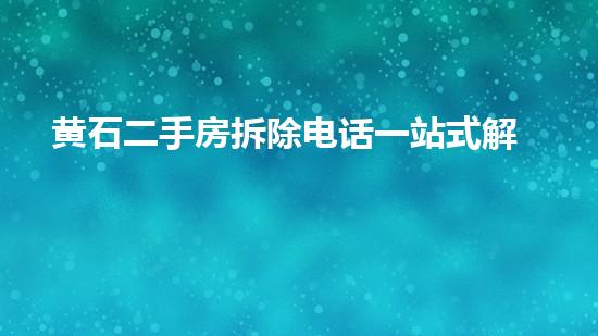 摘要:黄石二手房拆除电话一站式解决方案旨在为二手房拆除过程中的困难提供全方位的解决方案。本文将从多个方向深入阐述这一解决方案的优势和特点,为读者提供专业且丰富的信息。引言:随着城市建设的加快,二手房拆...