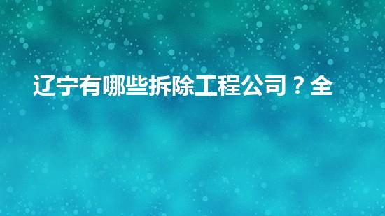 拆除工程作为一项复杂的工程项目,需要专业公司的技术支持和经验积累。本文旨在为读者提供关于辽宁省内拆除工程公司的全面名单,包括各公司的业务范围、技术特点、工程案例等,引导读者选择合适的拆除服务提供商。