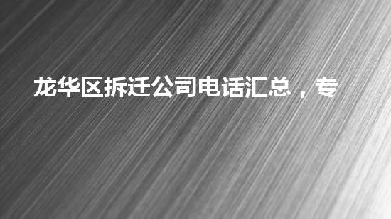 本篇文章将重点介绍龙华区拆迁公司电话汇总,专业拆除建筑,全城服务的相关信息。本文将为读者介绍龙华区拆迁公司的服务范围、服务流程以及其它方面的详细情况。希望通过本文的介绍,可以帮助读者更好地了解龙华区拆迁公司的相关信息,为您的拆迁计划提供更好的帮助。