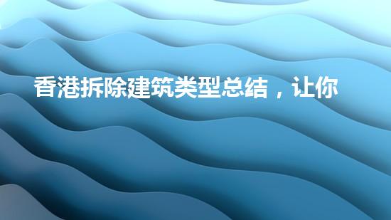 摘要:香港是一个发展快速的城市,城市更新变迁也非常迅速。拆除建筑类型的总结可以让人们了解这个城市的变迁,并且对于后续城市规划和发展也有一定的参考价值。正文:I. 住宅建筑的拆除香港的住宅建筑在不断地变...