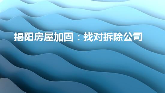 摘要:随着社会发展和经济水平的提高,人们对安全、舒适的居住环境有了更高的要求,因此也促进了房屋加固的需求。而在揭阳,找对拆除公司成为了房屋加固的重要前提。因此,本文将从拆除行业专家的角度出发,深入阐述...