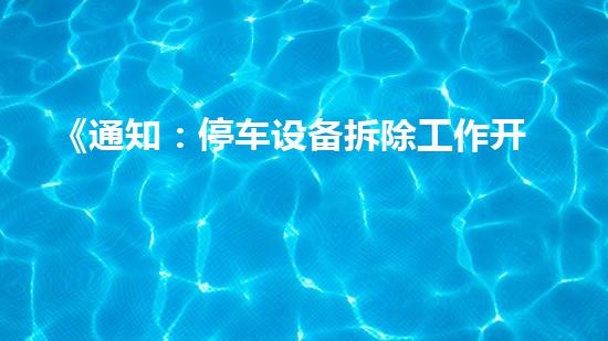 本文主要讲述了一个关于停车设备拆除工作开始的通知,作为一项重要的城市基础设施工作,停车设备的拆除关系到城市停车及交通,是一项必要的工作。为了深入了解此项工作,本文从四个方面进行了分析: 1) 工作概述;2) 工作原因;3)施工技术;4) 工作成果。 通过对这四个方面的阐述,读者可以了解停车拆除工作的过程,施工技术和工作的成果,对于深入了解这项工作非常有帮助。