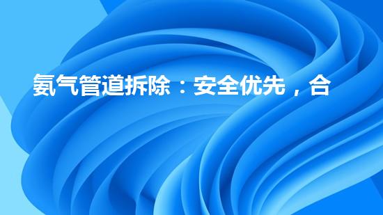 氨气管道拆除技术包括物理拆除、化学处理和热力处理等多种方式。其中,物理拆除是最常用的方式,这主要涉及使用钢锤或切割器等工具来切割和分离管道。化学处理涉及使用强酸或碱来溶解管道,但这种技术使用较少,因为会产生大量的危险废物。热力处理可以使用高温蒸汽或火焰,但这种技术需要小心操作,以避免管道漏洞或破裂。