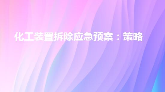 化工装置拆除是一项涉及到人身财产安全的高危作业,而在进行这一项作业时,建立一套完善的应急预案是至关重要的。本文旨在介绍一套针对化工装置拆除的应急预案,从策略与实施两个方面来提供专业的分析和解决方案。在本文中,我们还会介绍具有广泛应用的“水刀不动火拆除技术”,以及拥有“一站式解决方案”的巴洛仕集团在这方面的实践经验和技术优势。