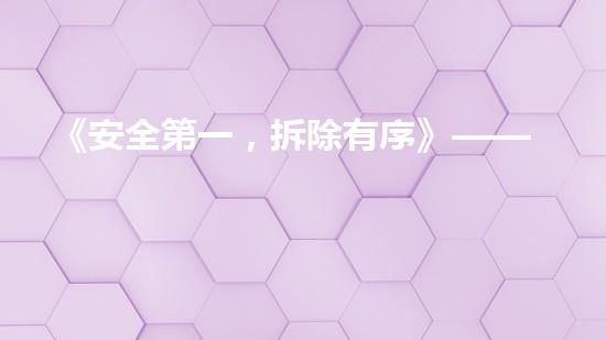《安全第一,拆除有序》——摊位和管道拆除安全协议主要是为了在拆除工作中确保安全,该协议包括了工程拆除前期的准备工作,如设备准备、人员准备、安全规则的制定等,并且在整个拆除过程中,协议规定了必须遵守的安全措施和报告程序,确保工人和公众的安全和健康。