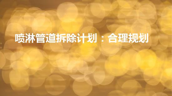 对于喷淋管道的拆除,首先要做好的就是合理规划拆除计划。这个方面的重点就是要根据现场情况进行科学分析和判断,明确工程量和工作难度,并根据实际情况确定施工方案,明确施工流程和施工周期,制定科学合理的施工计划,从而避免在施工过程中出现问题。
