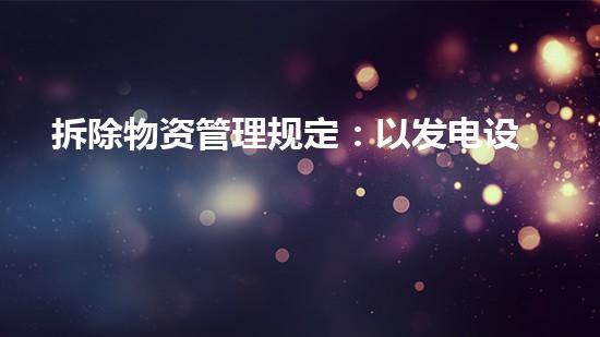 拆除物资管理规定是保障拆除过程安全和对资源再利用的重要法规。本文以发电设备为中心,深入探讨了拆除物资管理规定的重要性和具体实施措施,引起读者的兴趣。