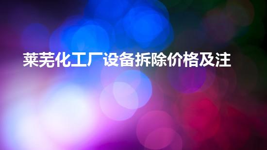 莱芜化工厂设备拆除价格及注意事项是一个重要的问题,对于工程师、工人和管理人员来说都很关键。其中,价格是拆除方案设计的重要依据,而注意事项则是确保拆除过程中不出现意外和事故的保障。本文将从多个方面深入详细介绍莱芜化工厂设备拆除价格及注意事项,帮助读者更好地理解这个问题。