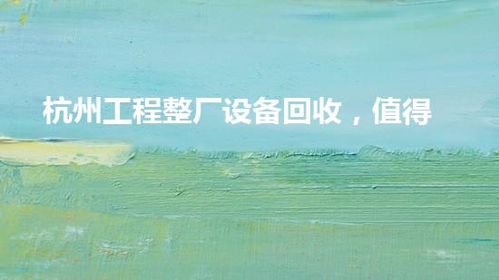 杭州工程整厂设备回收是一家专业从事整厂设备拆卸、搬迁以及设备回收的服务商,依托多年的行业经验和专业技术,为客户提供优质的服务。此文从多个方面入手,深入分析了杭州工程整厂设备回收的优势和特点,阐述了其在工程整厂设备回收领域内的重要性和影响,并且指出了未来的发展方向,为读者提供了更加全面、客观的认识。