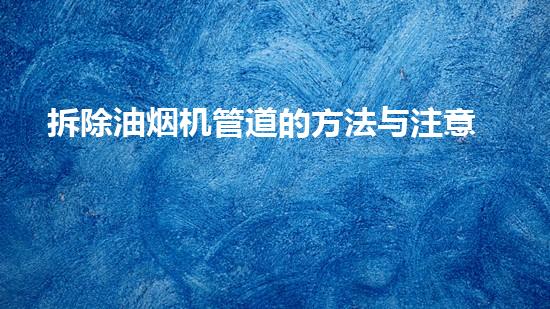 在拆除油烟机管道时,需要避免对环境造成污染。例如,在切割管道时需要防止灰尘和烟雾泄漏,可以使用湿布等材料来防止灰尘飞扬。