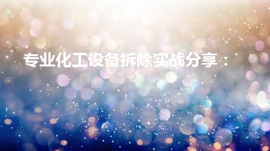 本文将介绍专业化工设备拆除的实战分享,全面解析其拆卸与处理方法。文章将从水刀不动火拆除技术、化工厂拆除、设备回收、危废处理、土壤修复等方面进行深入分析介绍,以期为读者提供有益的知识与经验。