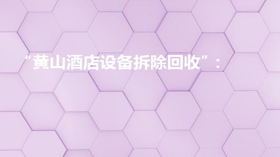 近年来,随着旅游业的发展,酒店业也在迅速扩张,越来越多的酒店设备需要被拆除。然而,如何处理这些废旧设备,既涉及如何处理危废,也涉及如何再利用这些资源。本文以“黄山酒店设备拆除回收”为中心,探讨历史的终结与资源的再利用,介绍巴洛仕集团化工拆除一站式解决方案,阐述水刀不动火拆除技术的应用,深入探讨油罐拆除、化工厂拆除、设备回收、危废处理和土壤修复方面的内容,并最终提出对未来的建议。