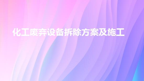在制定拆除方案的时候,首要考虑的问题就是安全问题。化工废弃设备大多会含有有害物质,这些物质在拆除过程中容易对人身造成伤害。因此,在制定拆除方案的时候,需要对周围环境和人员进行评估,采取相应的安全措施,保证拆除过程的安全性。