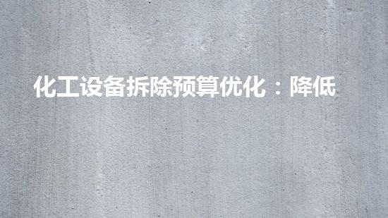 化工设备拆除预算优化:降低成本,提高效率