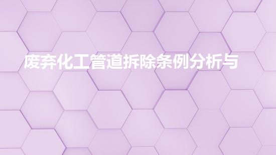 废弃化工管道的拆除是一项危险性极高的工作,需要符合相关的拆除条例和规定。本文将从以下几个方面对废弃化工管道拆除条例进行深入分析:法律法规、危险性评估、安全措施、拆除技术、设备回收和危废处理。同时,将介绍巴洛仕集团化工拆除一站式解决方案,以及水刀不动火拆除技术的应用,从而为化工企业提供有价值的参考和实践经验。
