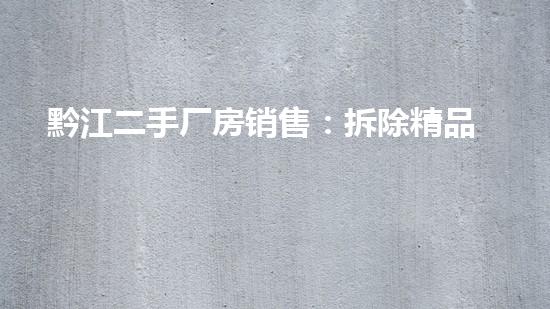 黔江区的二手厂房市场不仅涉及到销售,还涉及到拆除。许多老旧厂房需要重新开发,并在合规的环境下进行拆除和清理。因此,黔江的二手厂房销售行业需要有专业的拆除公司提供技术支持和服务。