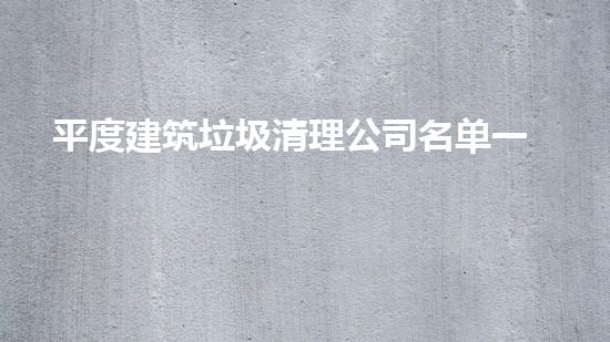 二、平度建筑垃圾清理公司名单一览
