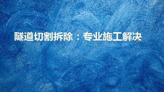 隧道切割拆除是一项技术性很强的工作,需要专业施工解决方案。本文会围绕着隧道切割拆除的专业施工解决方案,探讨化工厂拆除、清洗置换、设备回收、污泥减量化、废液处理、油罐拆除、危废处理以及环保施工等相关的话题。此外,本文还将介绍巴洛仕不动火水刀切割拆除技术的应用。全文共3500字左右。