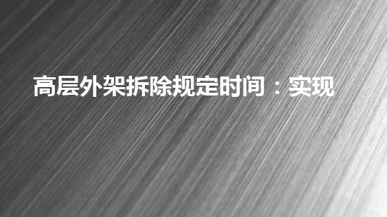 高层外架拆除是一项高风险的工程,在进行这项工作时,规定时间的制定变得至关重要。本文将详细阐述高层外架拆除规定时间的重要性,以及如何实现风险控制和工期保障。