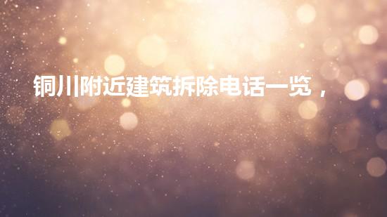 在拆除行业中,拥有一个可靠的建筑拆除电话列表非常重要。本文将提供铜川附近建筑拆除电话一览,为您快速解决需求提供便利。在正文中,我们将从以下四个方面进行深入阐述: