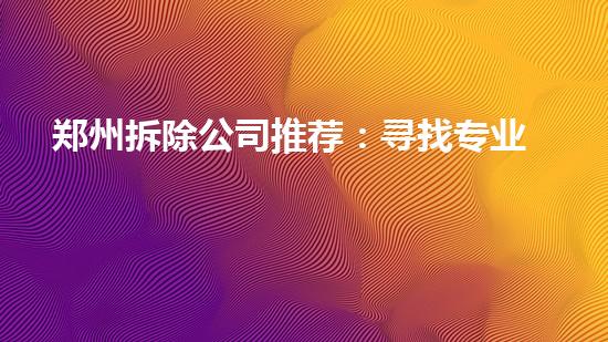 在拆除行业中,寻找专业拆除团队可以有效地保障拆除工作的安全和顺利进行。本文将就郑州拆除公司推荐:寻找专业拆除团队这一话题进行深入探讨,涉及拆除前清洗置换、废物处理、环保施工等多个方面,希望为读者提供一些有益的参考。