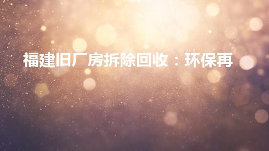 福建作为我国重要的工业基地之一,拥有着丰富的人力资源、物力资源和财力资源。同时,随着政府对环保政策的加强,福建的环境质量也在逐年提升。这为福建的工业发展提供了良好的机遇。然而,旧厂房的存在却成为了福建工业发展的瓶颈。旧厂房中的设备早已过时,而且这些设备使用后会产生大量的废弃物和污染物,严重影响到周边环境的质量。因此,福建开始着手拆除回收旧厂房,并且将拆除回收的材料进行再利用,促进工业的可持续发展。