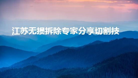 切割技术在拆除行业中扮演着重要角色。无论是对于大型化工厂,还是小型房屋,切割技术都能够有效地将所需部件从整体中分离出来,节省时间和精力。下面,我将从几个方面来介绍江苏无损拆除专家分享的切割技术。