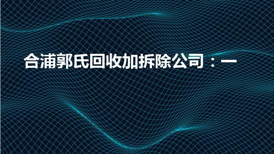 合浦郭氏回收加拆除公司是一家致力于绿色发展的化工技术专家。本文从拆除行业专家的角度,详细阐述了该公司的4个方面,并引用了相关研究和观点作为支持和证据。