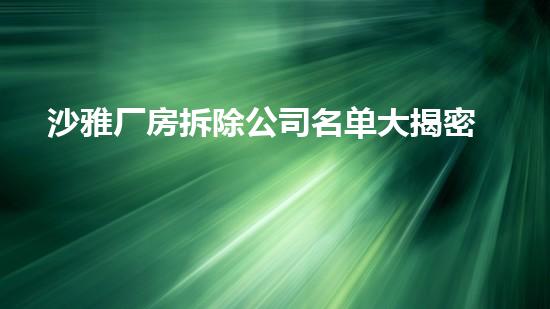 沙雅厂房拆除公司名单的大揭密,在当前社会是一个备受关注的话题。本文以化工技术专家的角度出发,从多个方面对这个话题进行系统解析,为读者提供更加深入、准确和客观的了解。
