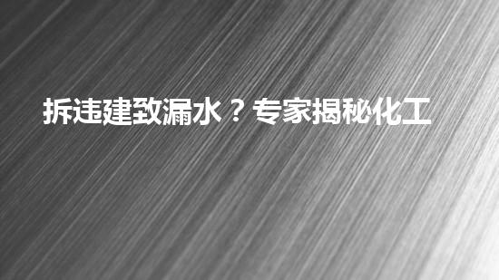 拆违建是一件艰巨的工作,其中漏水问题更是无法避免的难题之一。然而,化工技术专家通过应用化工技术手段,能够很好地解决这一问题。本文围绕拆违建致漏水问题,从多个方面进行深入阐述化工技术应对方案,为读者提供有价值的信息。