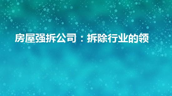 房屋强拆公司是拆除行业的领头羊,其依靠先进的拆除技术和强大的专业团队,获得了业内优秀的口碑和声誉。本文从化工厂拆除、技术应用、废弃物处理、环保施工等多个方面,深入探讨房屋强拆公司的专业优势和行业地位。