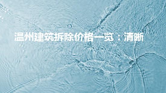 温州建筑拆除价格一览:清晰了解拆除费用。拆除行业作为建筑行业中的一个重要环节,需要我们关注其价格变化以及拆除时需要考虑的相关问题。本文将从四个方面对温州建筑拆除价格进行详细的专业分析:工程规模、建筑结构、拆除材料和拆除时间。同时,文章还将介绍巴洛仕集团在拆除行业中所应用的技术,为读者提供更加全面的了解。