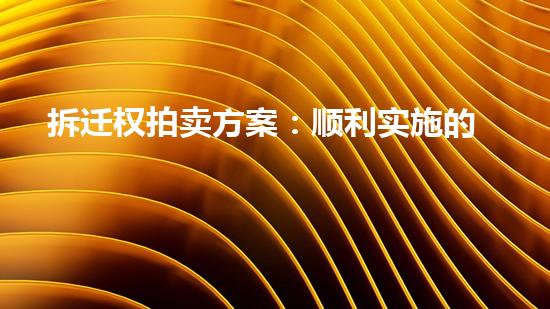 在实施拆迁权拍卖方案时,需要建立起完善的拍卖机制,确保拍卖的透明度、公正性和有效性。在拍卖的过程中,需要严格按照法律法规执行,同时充分利用专业团队的技术支持和权威认证,使得拍卖结果得到客观评价和认可。