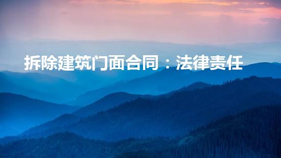 本文介绍了拆除建筑门面合同的法律责任与实践操作,引出了读者的兴趣,并提供了相关背景信息。作为一个化工技术专家,针对此话题,本文从以下四个方面进行详细阐述:1、合同的基本条款;2、涉及的法律风险;3、实践操作中的几大难点;4、环保施工技术的应用。通过深入的分析,本文详尽阐述了拆除建筑门面合同的法律责任与实践操作。