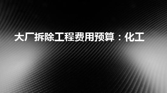 大厂拆除工程费用预算是一项重要的环节,需要进行详细和准确的预估和计算。本篇文章将由一名化工技术专家为大家深入探讨大厂拆除工程费用预算的相关问题和细节,帮助读者更好地了解这一过程。