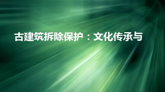 古建筑拆除保护:文化传承与现代化的挑战是一个复杂而重要的问题。如何在保护历史建筑以及推进现代化工业建设之间取得平衡?需要我们共同思考并推进。要想达到这个目标,我们需要在政策、技术、实践等多个方面下功夫。实施绿色拆除、政策支持、历史文化遗产的保护以及弘扬传统文化,这些措施可以共同推进古建筑拆除保护,保护好我们的历史文化遗产,营造良好的生态环境,促进社会经济和技术的发展。